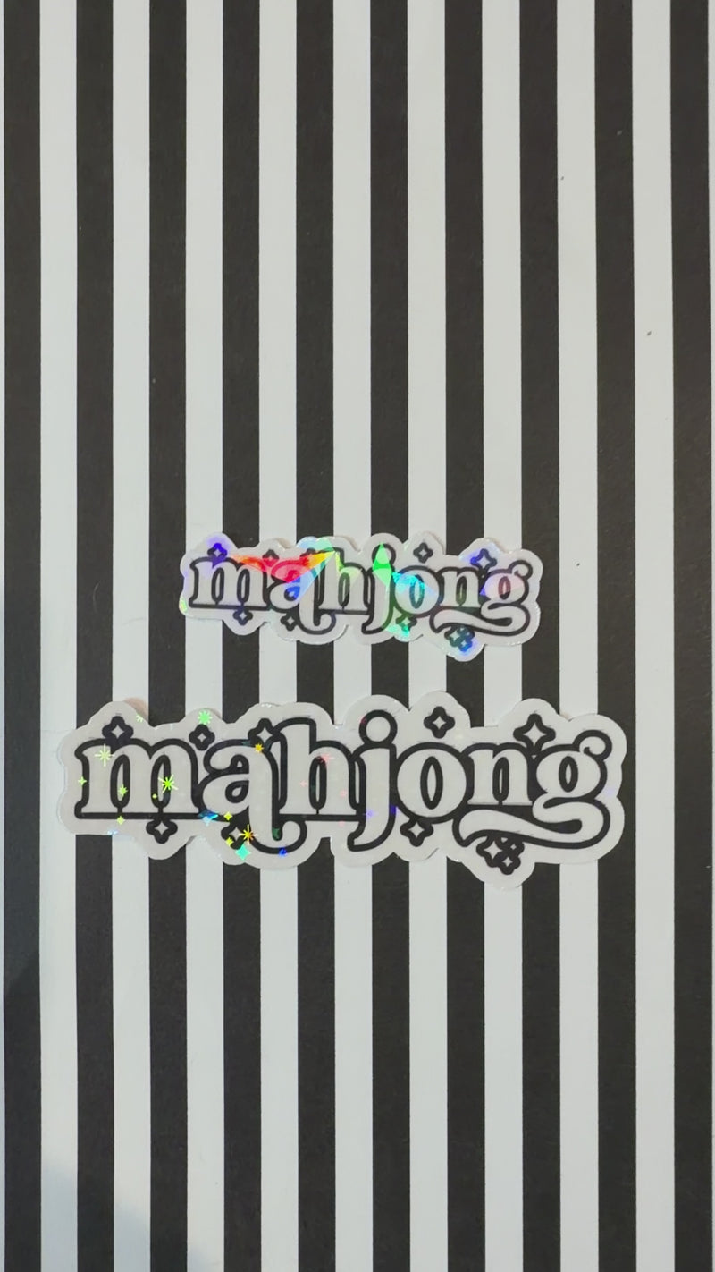 Ballet Pink Outline Black and White Mahjong Holographic Sticker