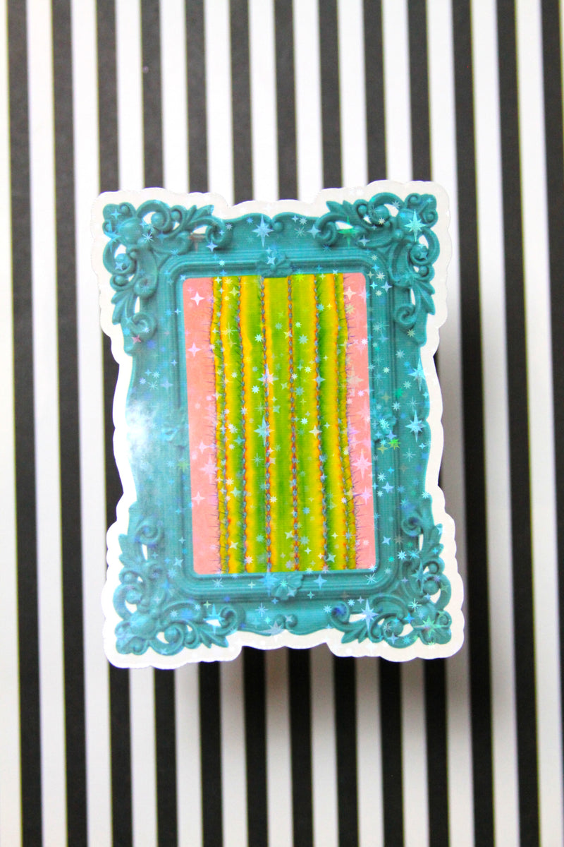 Blue Frame w/ Fuchsia & Teal Cactus Sticker